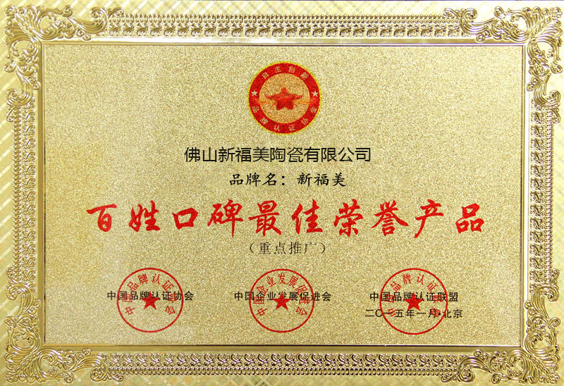 百姓口碑最佳荣誉产品